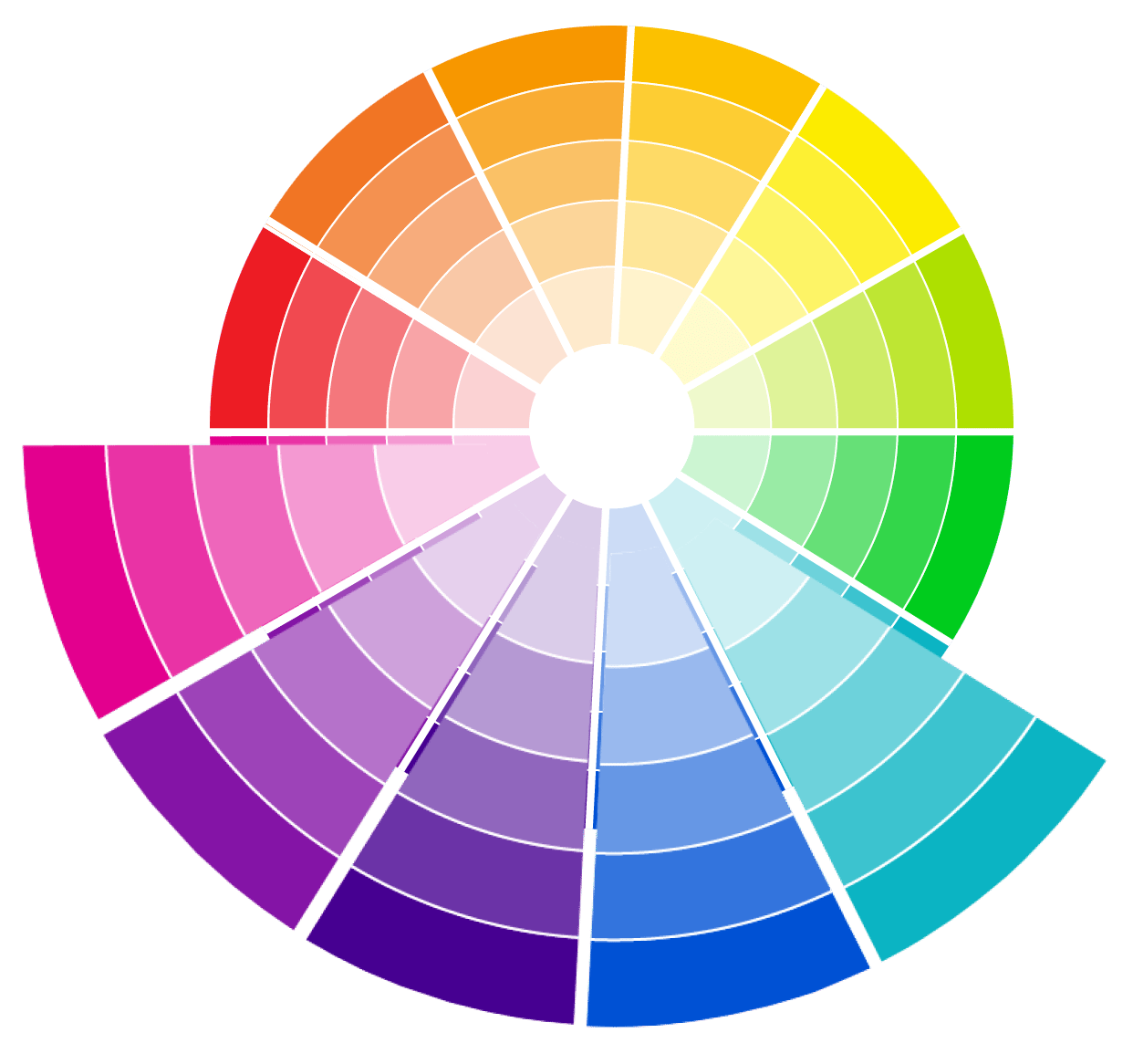 The color wheel showing the analogous color scheme
